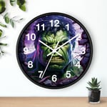 This bold 10" wall clock brings dramatic energy to any room with a vivid, high-contrast illustration at its center. Printed with bright, intense inks on a plexiglass face and framed in your choice of natural wood, black, or white, the design breaks through the dial so the image remains the focal point. A silent metal mechanism and pre-installed backside hook make mounting simple and unobtrusive, it tells time without ticking away the mood. Designed for indoor spaces where personality matters, this clock pairs striking visuals with dependable construction to keep your walls loud and the time clear.