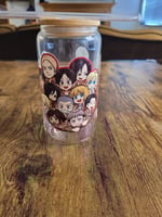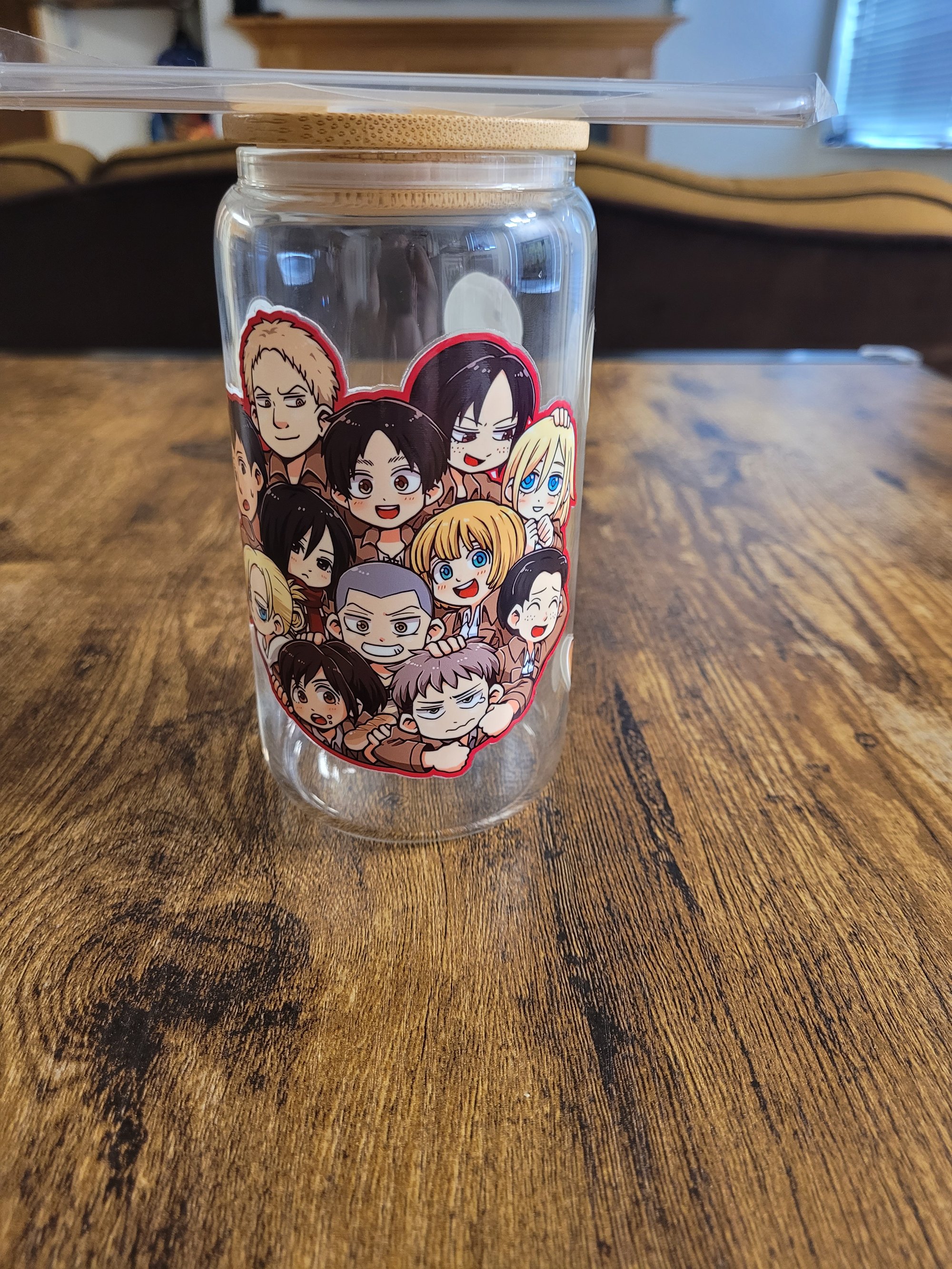 Stay hydrated in style with this adorable Titan tumbler! Featuring cute, chibi-inspired designs of your favorite characters, this tumbler is perfect for any fan who loves a touch of kawaii with their anime. The durable glass construction ensures your drinks stay fresh, while the eco-friendly bamboo lid and reusable glass straw make it a sustainable choice. Whether you're sipping iced coffee, tea, or juice, this tumbler brings a fun and charming flair to your daily routine. Take your fandom on the go with this must-have collectible!