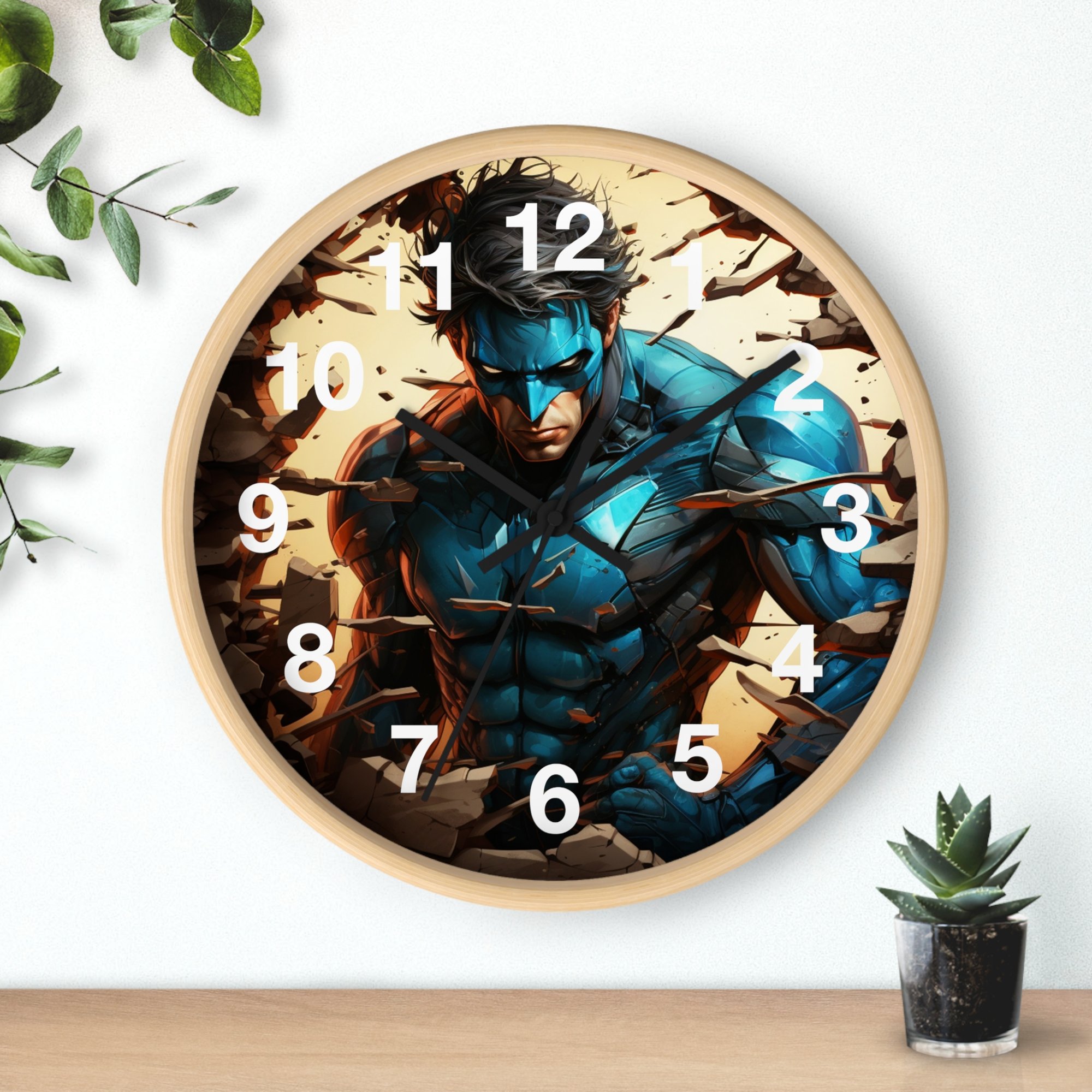 A bold, character-driven wall clock that brings comic-book energy to any room. The striking, high-contrast illustration sits behind a clear plexiglass face, with easy-to-read numerals and quiet, continuous movement so the art, and the moment, stay uninterrupted. Choose from natural wood, black, or white frames and matching hands to make the piece feel like it belongs on a den wall, in a creative studio, or above a gaming setup. Lightweight and ready to hang, it keeps time without ticking away the focus from whatever scene you’re living in.